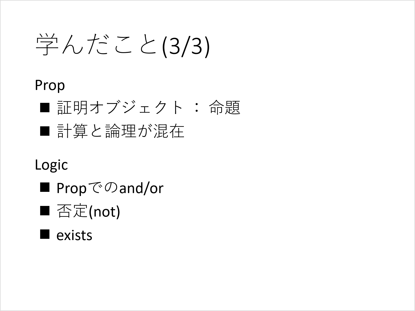 - もし p が P の根拠で、q が Q の根拠であるなら、conj p q を and P Q の根拠とすることができる。